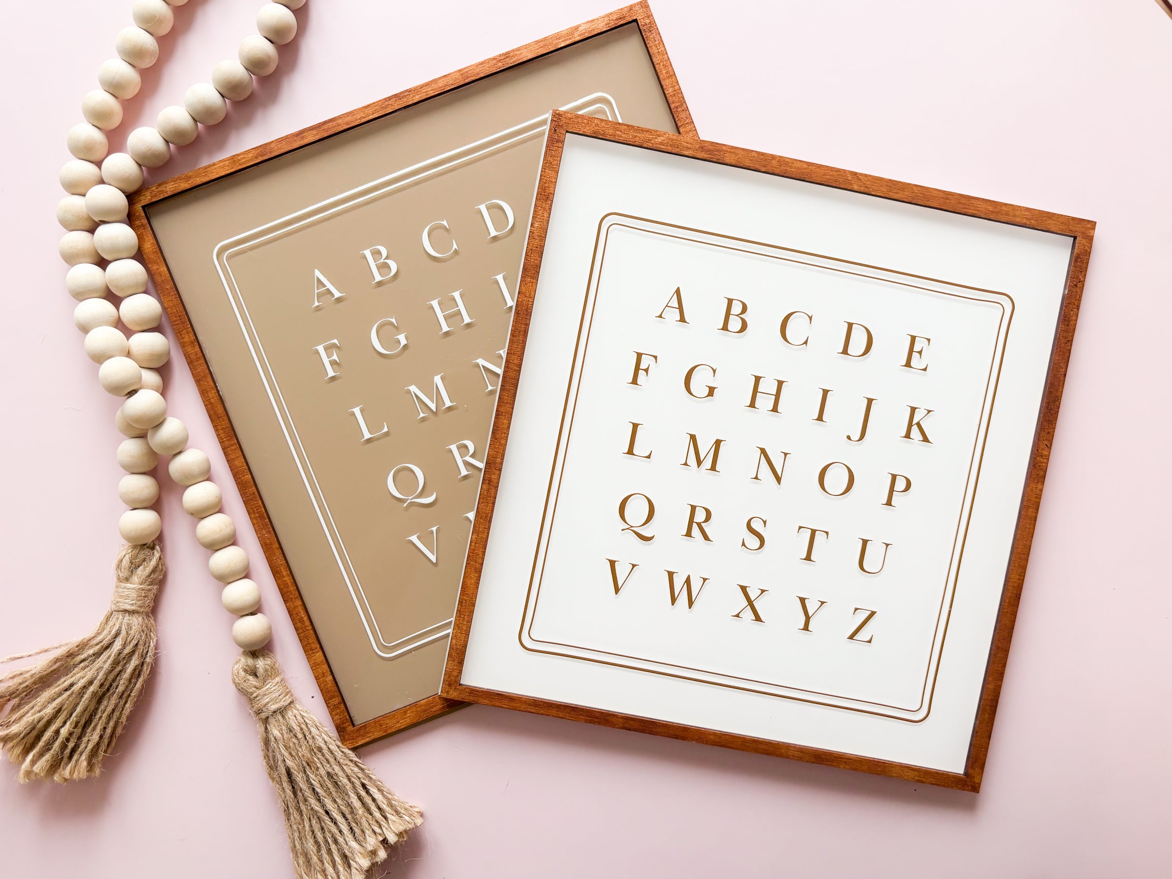 Jolis cadres alphabet au style épuré et chaleureux, parfaits pour décorer une chambre d’enfant ou un coin lecture. Une touche intemporelle qui allie apprentissage et décoration.